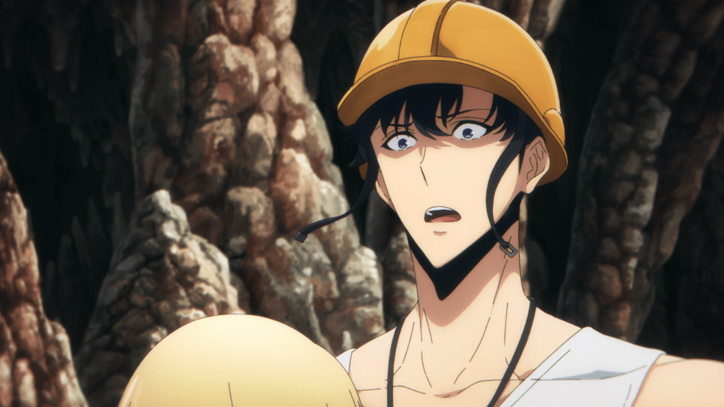 The episode starts off with another scene of Hae-in Cha being painfully awkward. She forgot to bring a weapon, and despite being S-Rank, it’s still not a good idea to go into a dungeon completely empty-handed. The only thing available to use as a weapon is a clunky old pickaxe for mining magic crystals. Blushing and feeling lame, poor Cha hurries into the dungeon. That scene was probably supposed to make us think “Aw, cute,” but it was also just incredibly awkward.