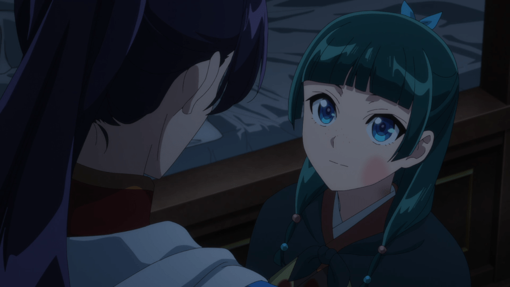 (Side Note: I’m not going to lie – I’m a passionate yuri fan who ships Maomao x Shisui. However, I suspect the latter will die by the end of the season, and I’ll go back to shipping Maomao with Jinshi. I’m a masochist who likes even toxic and tragic yuri couples, but that doesn’t mean I want Shisui to die. She’s such a great character. I’ll probably cry if she dies.)