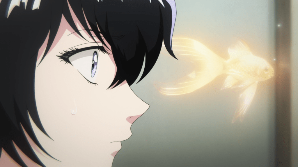Elsewhere, the spirit of Success the fish helps Reiko survive as Kowloon is destroyed. (Goldfish are considered lucky animals in Chinese culture.) The fish leads Reiko to a theater where she watches Kudo’s memories surrounding the sudden death of Kujirai B. It was heartbreaking for Kudo because Kujirai died before giving him a final answer to his proposal. In the present, Reiko and Kudo talk about how they couldn’t understand Kujirai B, which is probably why she wasn’t replicated perfectly.