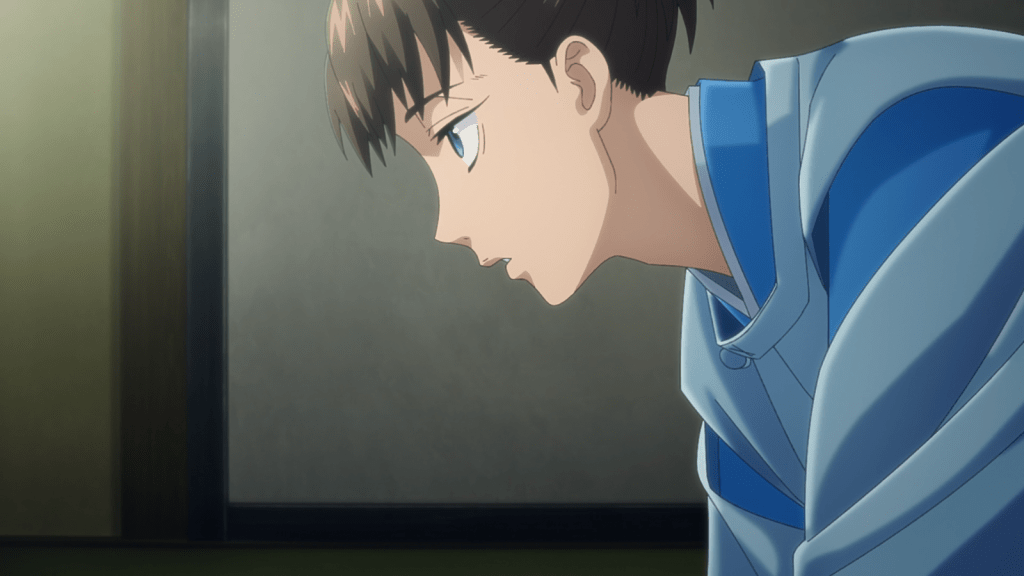 The visuals in this anime are highly stylized. Not everyone will like the distinct art-style, and it took me some time to adjust. Characters are very tall and slender, with unusually shaped heads, large eyes, long noses, and tiny mouths. Yatagarasu’s characters are easy to tell apart and remember. I loved all the character designs, but especially Sumio, Hamayu, and Wakamiya. In addition to solid character designs and an unusual art style, Yatagarasu features a bold but not overbearing color pallet. It’s quite refreshing.