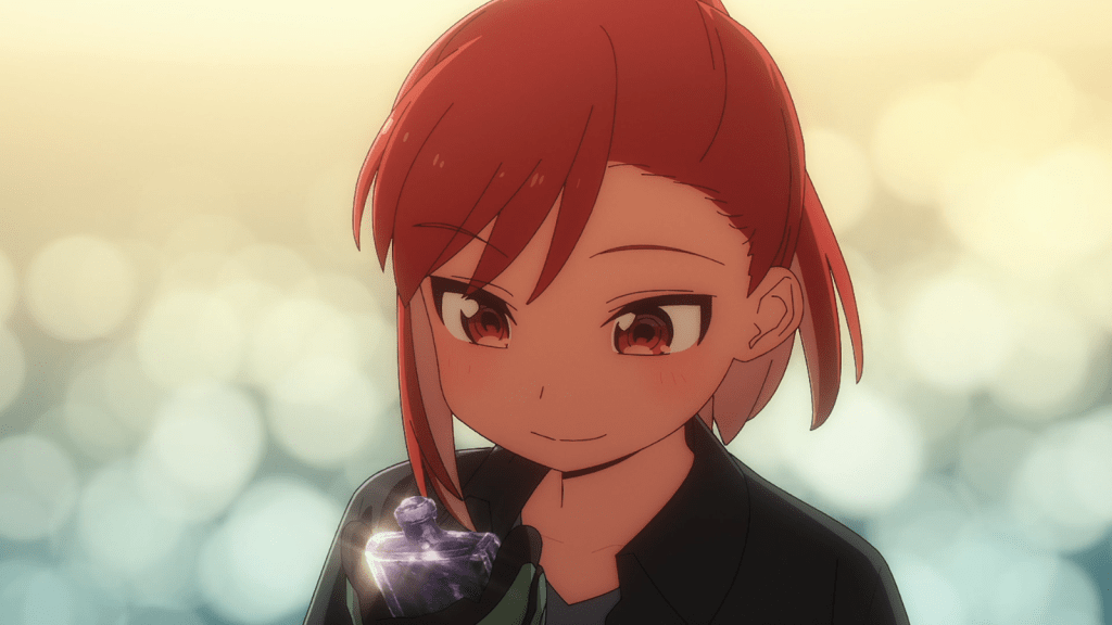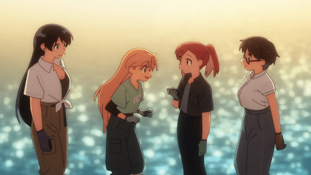 At the end of the fun day, Shoko admitted to Imari that she wanted to be a geology researcher. Imari encouraged Shoko to pursue her dream. It was a fantastic, moving moment. As the car pulls away, Ruri hopes she can become closer with Shoko, and Nagi gives a bit of trivia. In the past, Japanese people called blue sea glass “Ruri Glass.” Excellent, beautiful episode as usual.