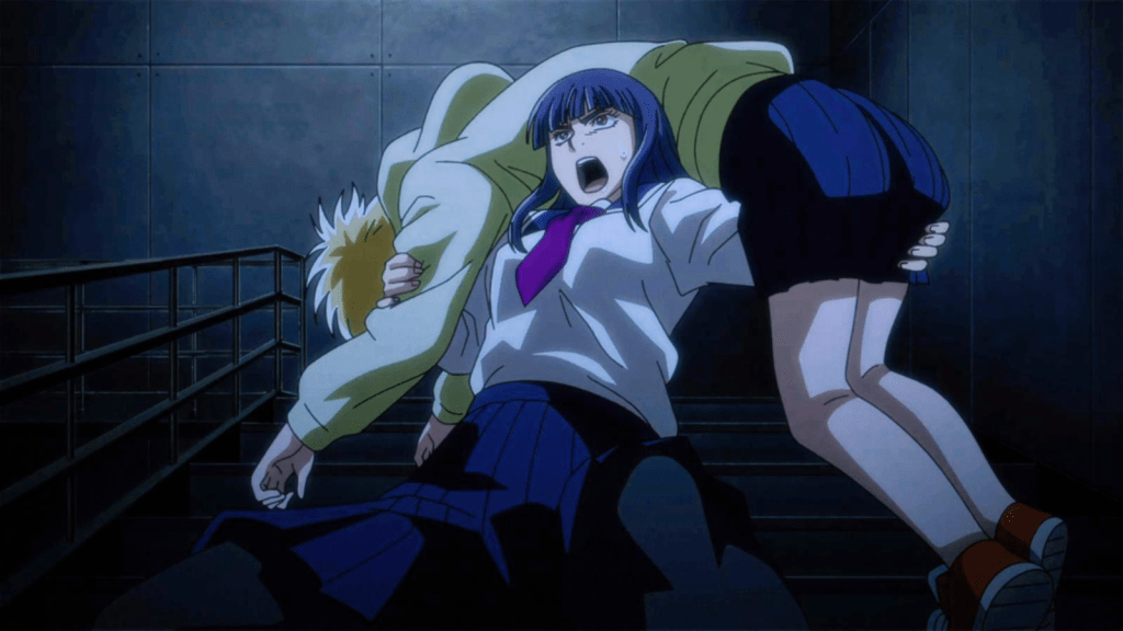 Arata has a cute and cool character design. In addition, his positivity and happy-go-lucky attitude are uplifting. However, Kunagi and Kaoru are better characters in my humble opinion. Something about the ninja boy seems a bit forced. Anyway, at the end of the fifth episode, we met Grandma. She’s the older lady who runs the compound where Kunagi and a bunch of other survivors now live. Grandma is so freaking cool and I dearly hope that we see more of her in the future.