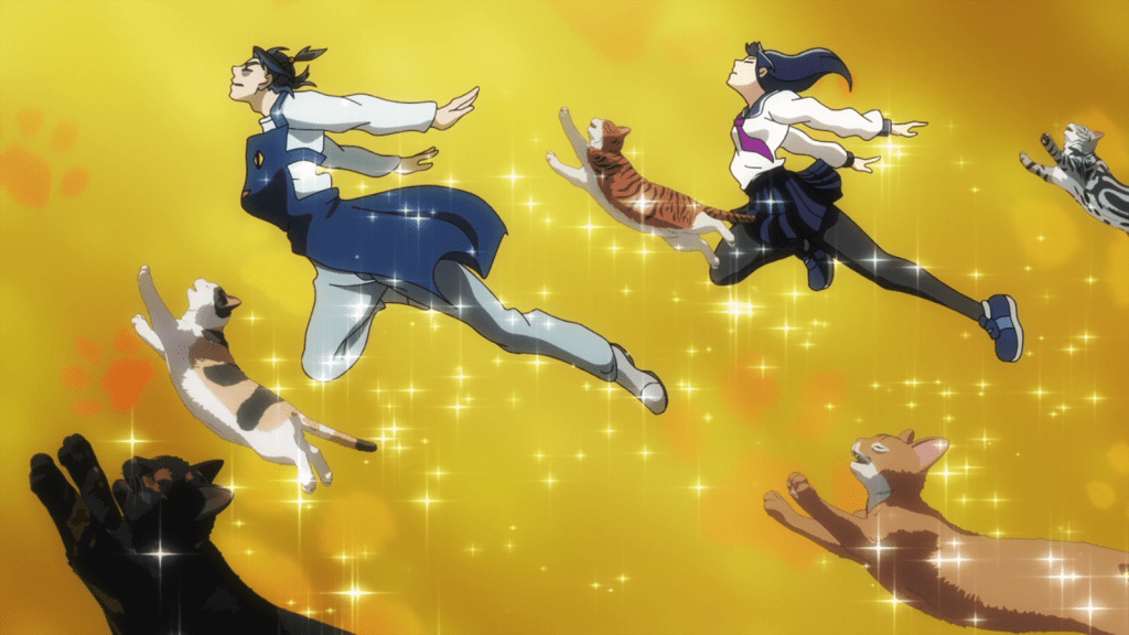 Throughout these episodes, real facts about cats and their care are frequently dropped by the characters or the narration. One such fact is that cats are crepuscular, meaning they are most active at dawn and dusk. I guess I had forgotten that fact. Like Tsutumi, I mistakenly thought cats were nocturnal. It’s always nice to be corrected on animal facts. I’ve certainly gotten rusty since I last studied animals. Anyway, let’s talk about the next few episodes in Nyaight of the Living Cat.