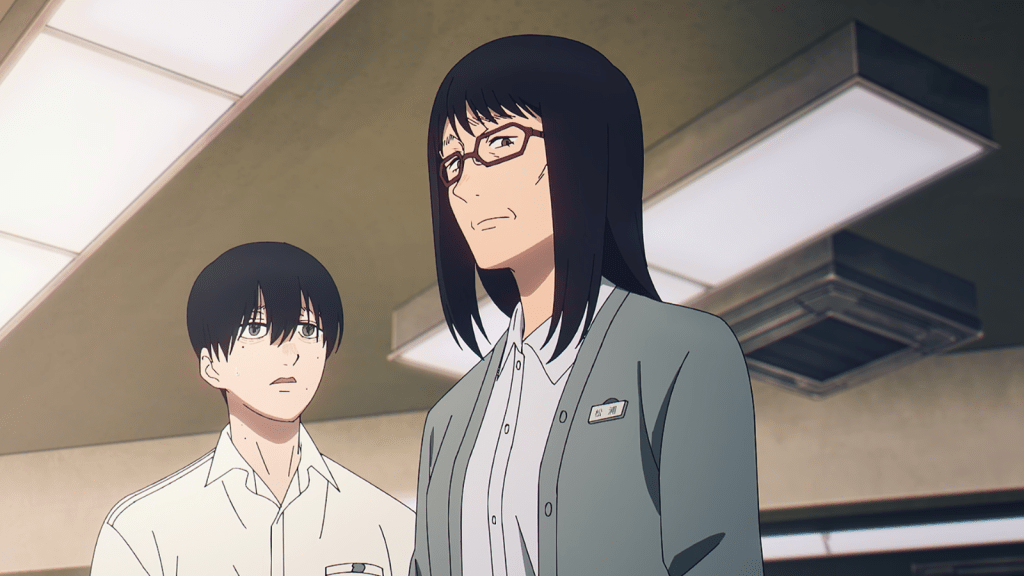 The new task became surviving the fall. Thanks to Akira’s sowing skills, Sakamoto, Shin, and a handful of others used a makeshift parachute and survived. They also each had a JCC bullet, which was required to pass the second stage of the exam. The episode ends with a mysterious someone approaching. I suspect this someone is the blue-haired woman who fought alongside Sakamoto and Nagumo. She also seems to be the mother of Akira. Speaking of Akira, I wonder why she wants to become an assassin? We’ll probably learn more about her in later episodes.