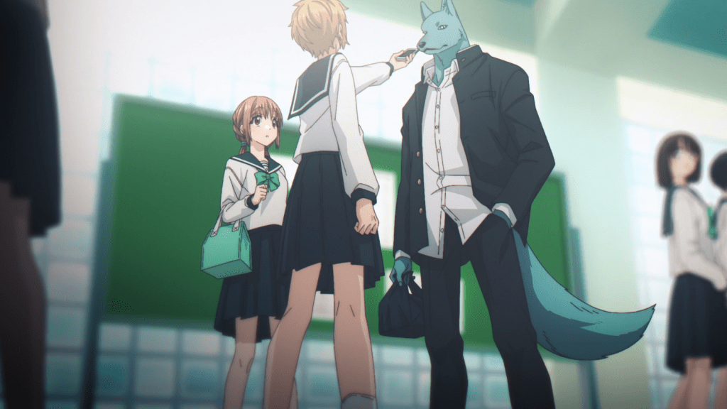 Just then, a nearby woman started to get concerned that Tsunagu was harassing Mari. In response, Mari took Tsunagu’s hand and led him boldly across the street. She was not ashamed to be holding hands with a beastperson, and this way, nobody would assume the worst. During this final scene, Mari finally asked Tsunagu on a date. I’m proud of her for taking action like that, but Tsunagu assumed she meant hanging out with Aida as a trio. He immediately agreed that “the three of us” should hang out. The episode ends here with some comical disappoinment from Mari.