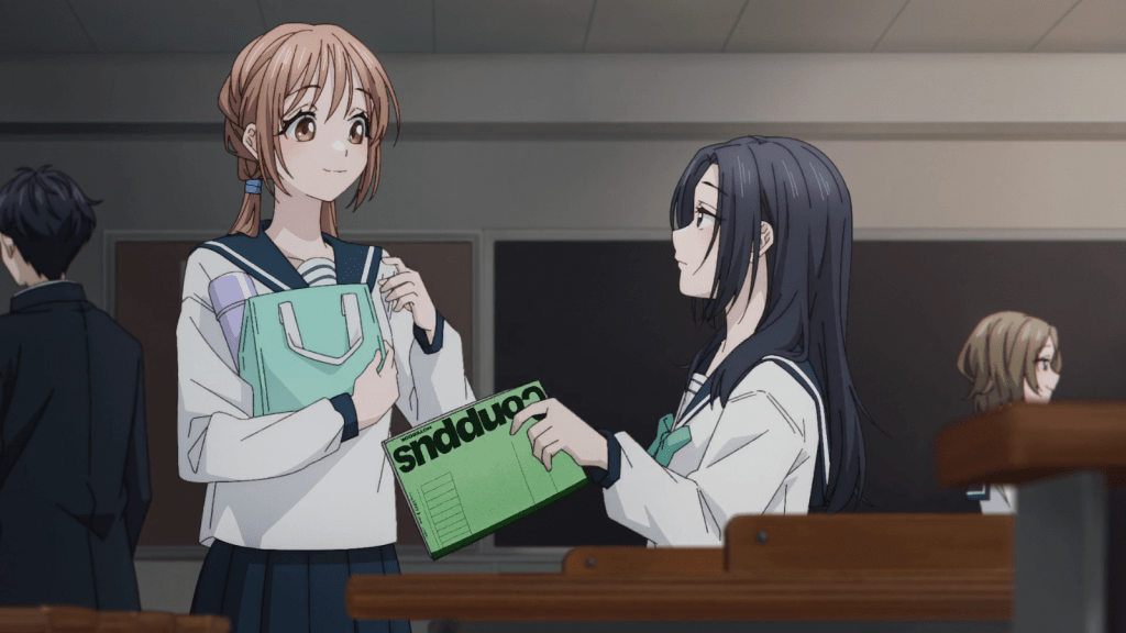In other notes, I loved the voice-acting in this episode, especially since I recognize the voices of Ritsuka and Ayano from other roles. Ritsuka was voiced by Asami Seto, who’s had several big roles in popular anime, such as Raphtalia from Shield Hero and Mai Sakurajima from Bunny-Girl Senpai. I appreciated her recent roles as Nagi from Ruri Rocks and Shisui from Apothecary Diaries Season 2. As for Ayano, she was voiced by Miyuri Shimabukuro, who I know best as the voice of Tuesday from Carole and Tuesday. I also loved her so much as Draka in Orb: On the Movements of the Earth.