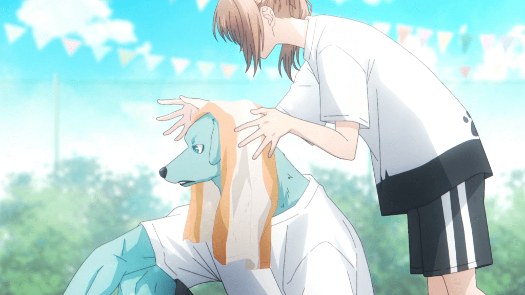 It was time for the sports festival. In the running event, Tsunagu came in first place, beating out everyone despite the social backlash. Mari cheered for him before and then brought him a towel to wipe his face after he won. That was another cute and romantic moment, event though it was also bittersweet, with surrounding people gossiping and calling Mari a weirdo for flirting with a beastperson.
