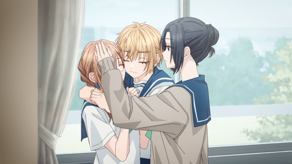 The next big event was the sports festival, which everyone knows is the best time to cheer for the person you admire as they compete in team sports and relays. But before that, there was a lot of preparing to do. While everyone at school was bustling around with preparations and decorations, Ristuka and Ayano had a brief scene. They teased Mari about calling Yukihiro by his first name. They also teased her about liking Tsunagu until it clearly made Mari too thoughtful and worried. Ritsuka immediately felt bad about it and Ayano said they would support Mari from the sidelines. It was good to see the girls again, even if their dynamic isn’t always smooth and perfect.