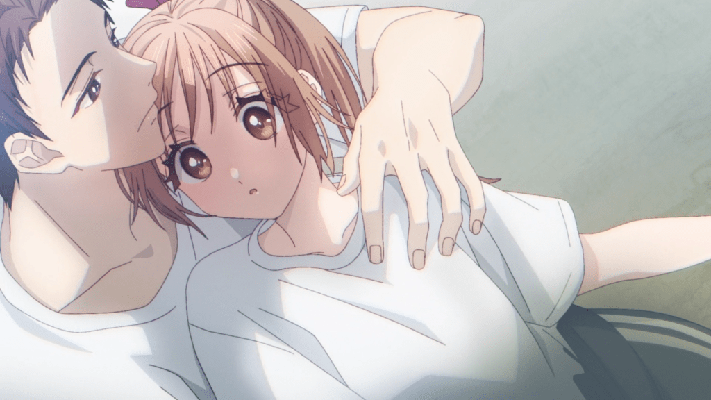 Mari saw Taori lighting up as she was treated well and physically supported by Tsunagu. It made her feel a twinge of jealousy. She wanted to be his partner. When Tsunagu came to find her in the empty classroom, she told him the truth of her feelings. Tsunagu responded by hugging Mari and saying he had also wanted to be her partner in the race. Mari looked surprised, since the two of them had agreed to keep a physical distance. Why was Tsunagu suddenly passionately embracing her? Are we going to see yet another scene of non-consensual sexuality of teenage characters? Ugh.