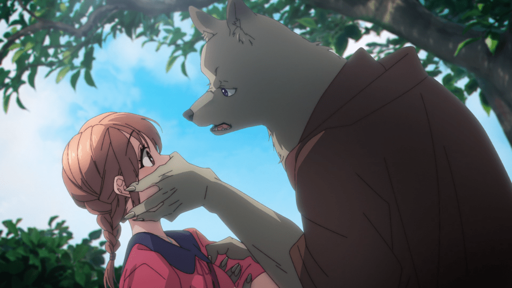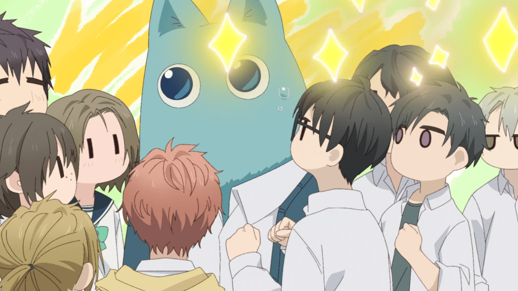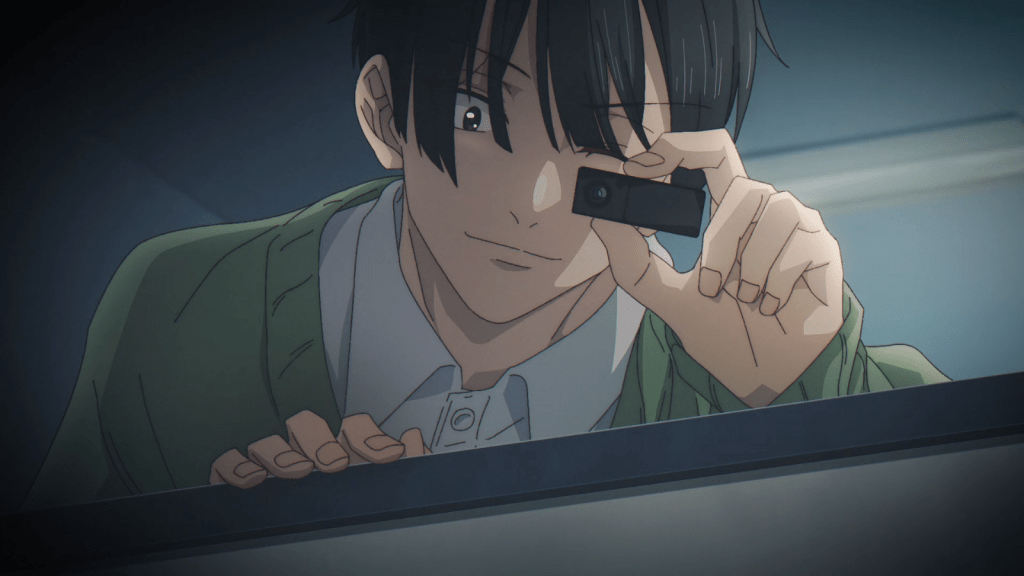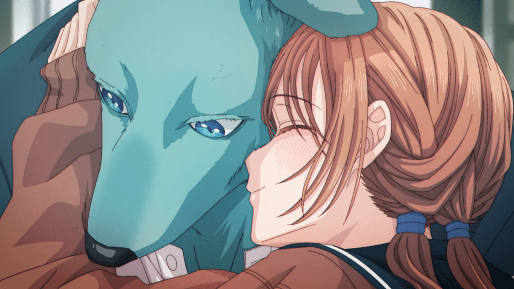 Mari followed Tsunagu to his house. There, in Tsunagu’s room, the young lovers shared some intimacy and enjoyed touching each other. Tsunagu wore a muzzle to prevent him from losing control and biting Mari. I’ve often said that I would prefer if this show was less sexual with its highschool characters. While that is still true, I was relatively okay with this scene due to the fact that they had a healthy conversation about consent first. It wasn’t perfect, but it was acceptable. Tsunagu and Mari stopped when they both felt like it was too much. I felt relieved when the scene was over.