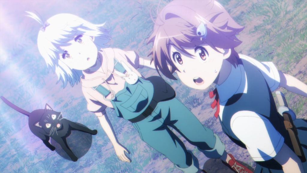 Yoko grew easily bored of the routine life within the bounds of the shelter. She dreamed of seeing the world depicted in the old smartphone. However, it still felt unreal and sudden when Onee-chan told her that it was now safe to go outside. Far from wanting to prevent them from leaving, Onee-chan encouraged Yoko to take Airi and the Serrow and go exploring. Early on, I was under the impression that Yoko and Airi had run away from the shelter without permission. This episode made it clear that wasn’t the case.