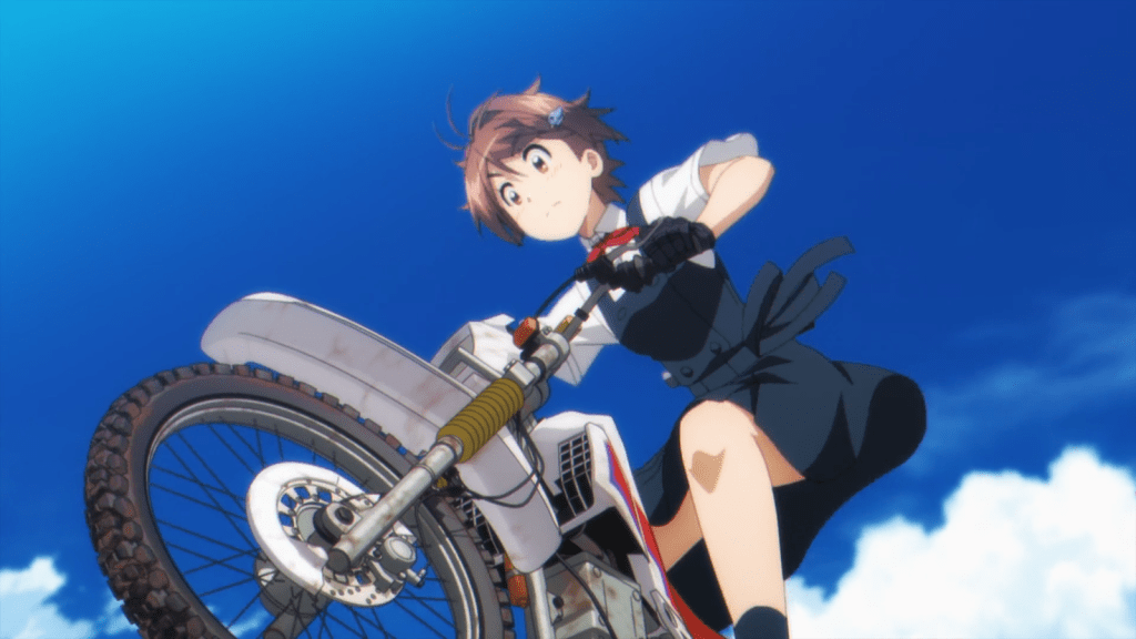 At first, Yoko didn’t believe Airi, but her disbelief didn’t last long. Soon, she wanted to meet the aliens too. In order to impress the extraterrestrials, Yoko decided to ride the Serrow up the slope of the Yoshimi caves hill. It was a tough path, but Yoko and Airi made it happen together. While she rode the Serrow, Yoko reviewed the eras of Japanese history out loud, symbolizing humanity climbing upward through the ages. At last, Yoko reached the top of the hill and Airi clapped enthusiastically.
