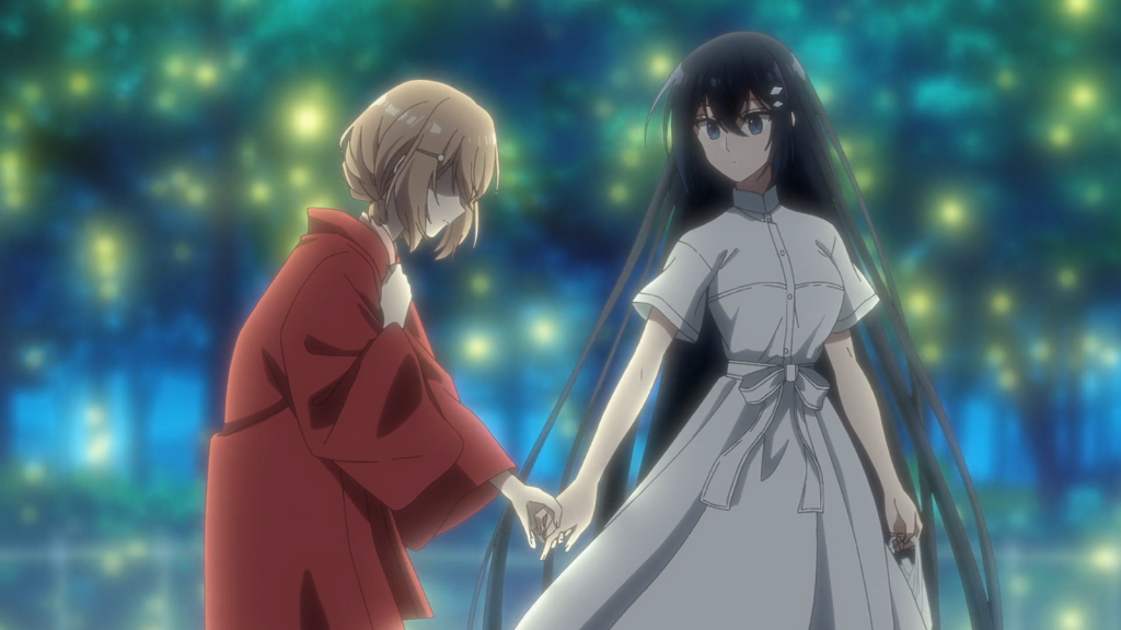 Nevertheless, the intense and intrusive suicidal ideation was still prominent in Hinako’s mind. To her, the cruel promise seemed like the ideal option. Hinako’s apology may have been empty in terms of fixing anything or making amends, but it reflected her sensitive nature. For her part, Shiori stated that she would never forgive Hinako, even long after she was dead. But she held on to Hinako and they walked back hand-in-hand. This scene reminded me that this show is still toxic yuri at the end of the day. I wish Hinako would get better, but I know from experience that healing suicidal ideation takes a long time. There was probably no good way to wrap up this story in one season.