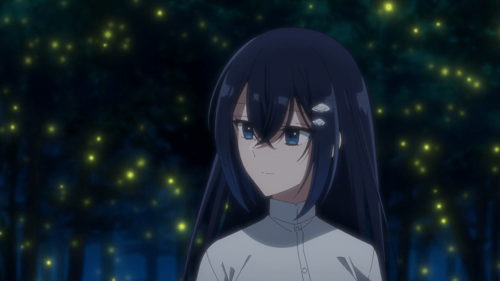 On the way back from the convenience store, Hinako and Shiori saw what looked like fireflies at first, slowly rising from a small, dark body of water on the side of the path. Hinako almost touched one before Shiori stopped her and said those “fireflies” were deceased human souls. They really did look beautiful and provided a unique background for the conversation that unfolded between the girls. Hinako now seemed to understand that the promise with Shiori was an extremely painful thing for the mermaid. She questioned why Shiori agreed to the pact at all.