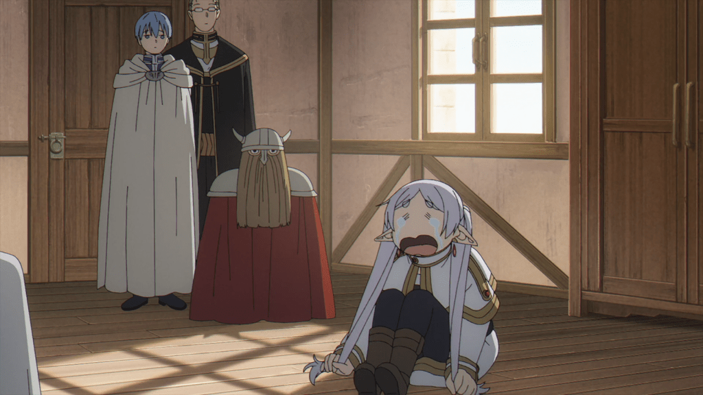 (Side Note: Many folks on the Autism Spectrum or otherwise neurodivergent people like myself have “claimed” Frieren. She is a good example of a neurodivergent character. As for myself, I was never diagnosed with ASD, but I suspect I qualify. ADHD, Major Depression, and anxiety disorders are my main diagnoses, though I have more, lol. All that to say, Frieren’s “tantrums” were introduced as a semi-comical thing, but they nevertheless strike me as similar to the meltdowns that some autistic people experience. I have meltdowns myself when I’m too overstimulated. Meltdowns don’t last for days on end, as far as I am aware, but they can be very loud, dramatic and tearful, depending on the person. TLDR: More evidence that Frieren is on the Spectrum.)