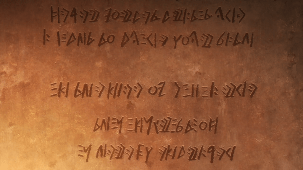 Frieren, Fern, and Stark followed the dwarf to a mine he built that connected to some ancient underground ruins. Within the ruins was a stone engraving proclaiming that Boshaft was the world’s best alcohol. It was written ancient Elvish and signed by someone named Milliarde. Fass remarked that it was impressive that Fern could read ancient Elvish at her age. Fern explained that she needed to learn it young in order to read most magical Grimoires. Anyway, near the inscription was a storeroom that should contain the wondrous Boshaft. However, it was behind a door sealed with magic.