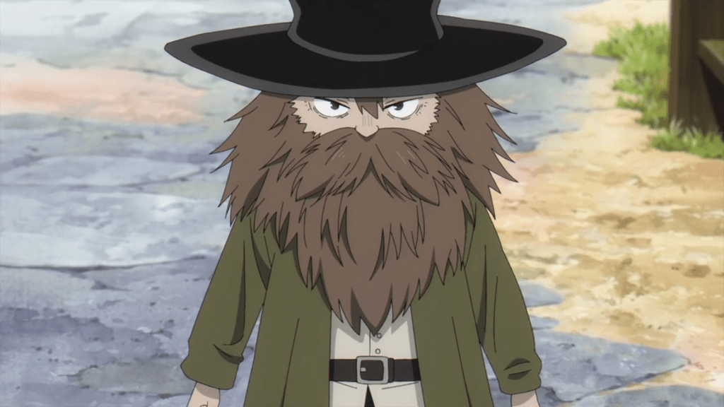 I’ll be going through the second half of the episode in less detail because I’m in a hurry and because it didn’t catch my interest quite as much as the first half. Frieren and her party arrived in a fortress city run by the Norm Company. This trading business was responsible for much of the transportation and distribution of food and goods to the Northern Plateau. In the past, the Norm company boss loaned a few gold coins to Himmel and his party. The group was told they could pay it back at any time. Now it had been decades and the loan had collected interest. The grandson of the noble now wanted Frieren to pay the debt back in full.