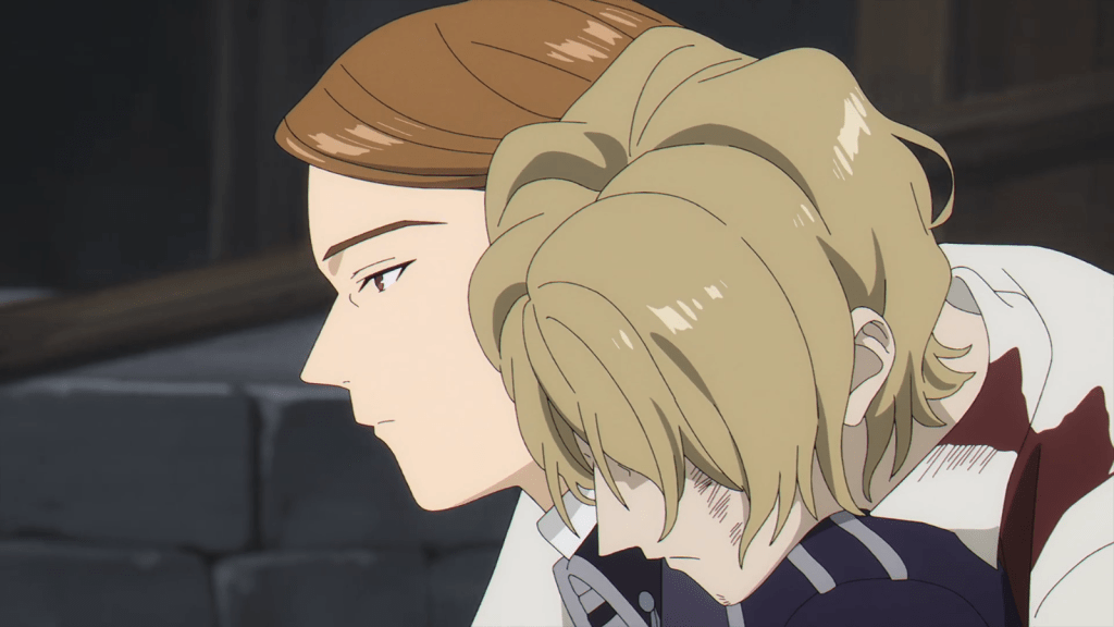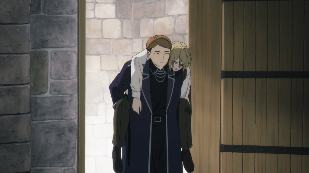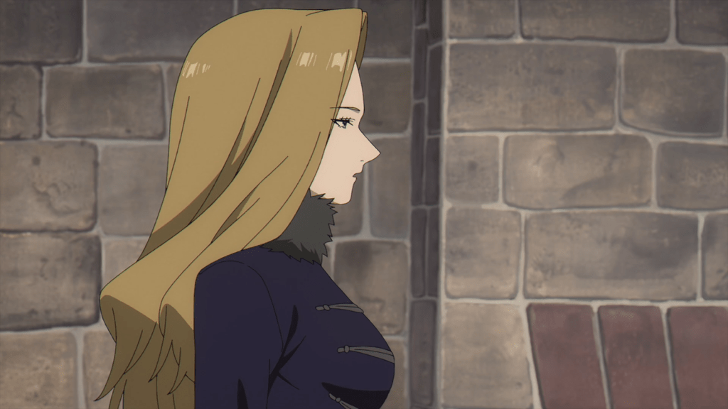 Stark delivered bread to Geneau outside while the three women ate their bread inside the church. Before he left, Stark had an important talk with Methode. Together, they figured out something important about their enemy. But that doesn’t get revealed until the end of the episode. Before we get to that, I have a few thoughts on Methode. We learned previously that she has versatile abilities and spells, including restraining and hypnotic magic. She’s also incredibly beautiful. I am intrigued by her character due to her attractive design, interesting magic, and calming voice. (Methode is played by Reina Ueda, whose roles also include Hinako from This Monster Wants to Eat Me, Reze from Chainsaw Man Movie: Reze Arc, and Cha Hae-in from Solo Leveling.)