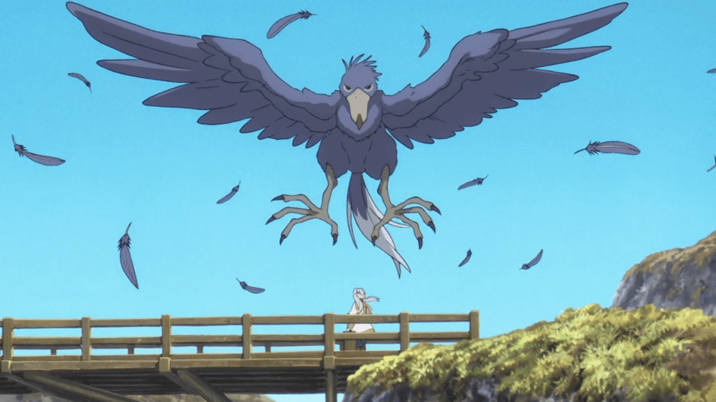 Anyway, Gehen had spent 200 years building the bridge. His Dwarf village used to be nearby, but was attacked by Demons and destroyed. If a bridge had been present at that time, more Dwarves could have escaped. That’s why Gehen dedicated his life to building the bridge. In Himmel’s time, the bridge was incomplete, and Gehen had run out of funds. Himmel gave the Dwarf enough money to build for a long time. The repayment would be the construction of the bridge. Since Himmel wouldn’t be alive when it was done, it fell to Frieren to observe that the deal was done. Now, in the present, the crossing was finally complete. But there was one problem. A flock of giant bird monsters was preventing anyone from crossing safely. In exchange for slaying the monsters, Gehen offered a book with a spell for perfectly flipping pancakes. Frieren gladly accepted.