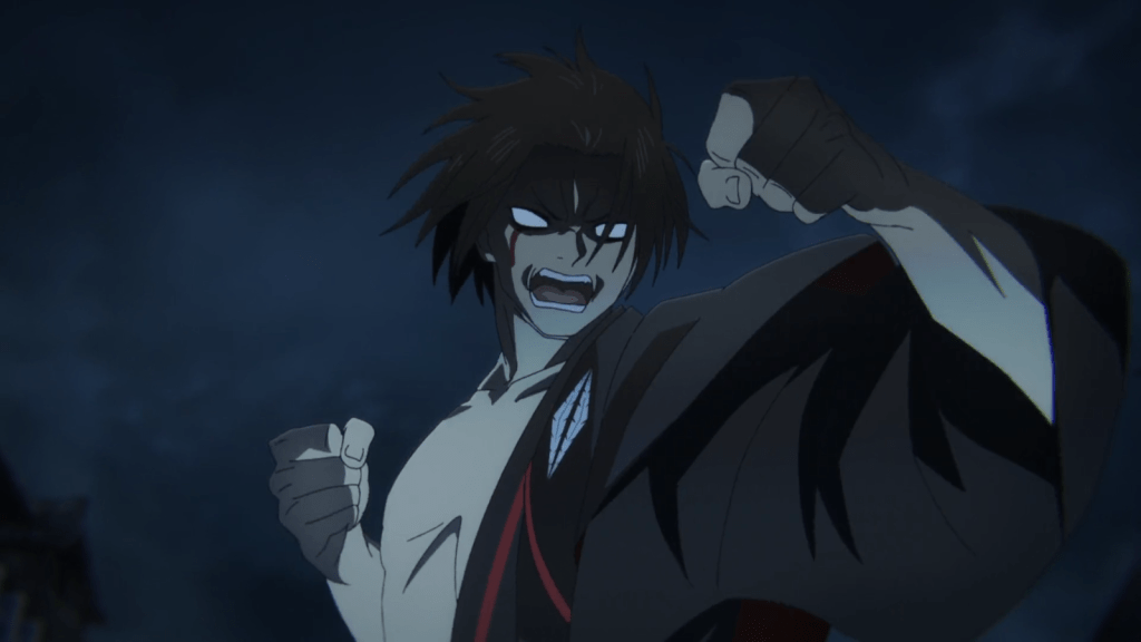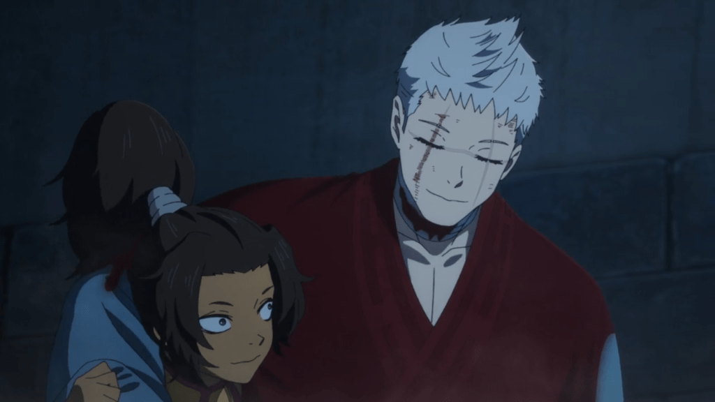 Before I rant about Shugen, we need to talk about Shija, the current leader of the ninjas on the island. I was initially guessing that Shija was a woman voiced by a male VA, but it seems Shija’s gender and sex are actually unknown and purposefully ambiguous. In other words, we have a new nonbinary character! Yay! The bad news is that they are already following a trope (usually reserved for female characters) that I don’t like. They are an obsessive, brooding person almost like a stalker. Shija is deeply in love with Gabimaru, whom they have been ordered to kill and replace. I don’t know what Shija plans to do when they face Gabimaru, and I’m not looking forward to their meeting. In the meantime, Shija faced off with Rien at the docks area, planning to burn the ships.