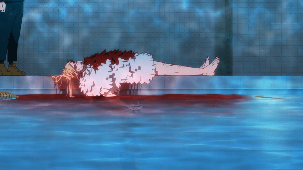 The battle wasn’t over yet. Reggie and Megumi approached each other slowly on the side of the pool. Reggie was unable to use his receipt technique now because he was soaking wet. Reggie suspected that Megumi was too weak to summon a shikigami again, and Megumi didn’t deny it. But in the middle of the martial arts fight between Megumi and Reggie, the Demon Dog shikigami pounced out of nowhere. It took a savage bite out of Reggie, fatally wounding him. Reggie pointed out that in any age, jujutsu sorcerers are dishonest. Before he died, he gave his 41 points to Megumi freely, saying he wanted to do a good deed before he passed. It was rather sad, but Reggie died bleeding out into the pool. This battle was cool, creative, and thematically significant, what with the sobering ending reminding us of the darkness of the world of sorcerers.