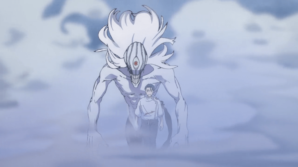 Regardless, Remi eventually found her path crossing with Megumi again. Though it looked like Fushiguro intended to kill Remi at first, he remembered that Tsumiki wouldn’t want him to do this. So, Megumi spared Remi while limping away, cursing his annoying older sister weakly. Tired and injured from the fighting, he passed out in the alleyway. Just then, the “angel” appeared above him. That’s all we get to see of Megumi for now. He was really cool in this episode. I’m proud of him for not killing Remi – not because she’s a woman, but because she’s someone who has no place in the fighting. She’s clearly mentally incapable and far too incompetent to be a sorcerer. Anyway, after this, the perspective will change to the Sendai Colony, where Yuta Okkotsu is fighting.