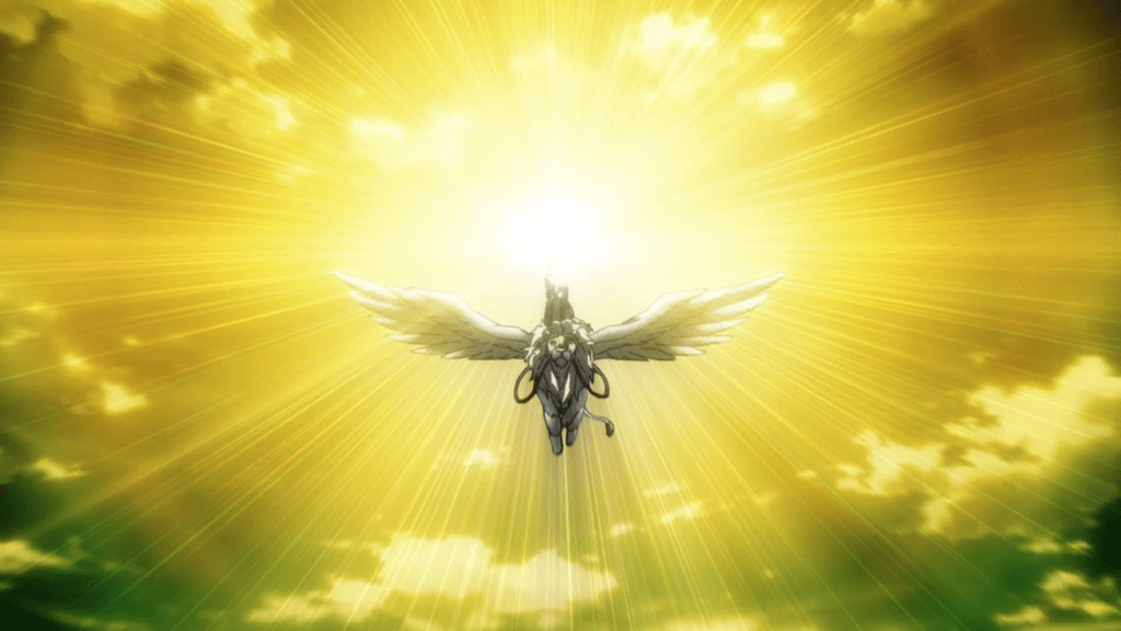 This episode was relatively light-hearted in the first half as the group set off into the Auguria Dunes, which was a sandy desert. Something that caught my attention that wasn’t fully explained was Roswaal’s mention of Ram’s body. She seems to need some kind of magical upkeep in order to use her magic. Again, it wasn’t explained in this episode. As the group headed toward the tower through the sandstorms, they figured out how to escape the warped space and get past the sand dunes. This was largely thanks to Ram and her clairvoyance. Unfortunately, on the other side of the warped space, they were attacked by mabeasts and a mysterious deadly light from the tower.