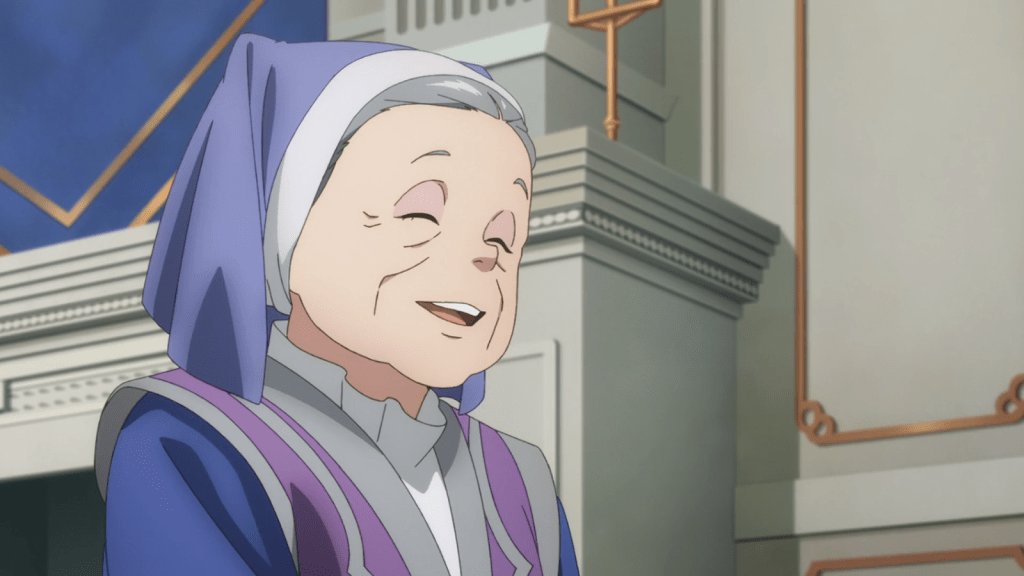 The first two episodes were so relatively intense and interesting that the third one seemed like a bit of a disappointment. That may be too harsh. It’s just that I felt the length of this installment and was a bit bored in the middle. Rosemyne moved into the Duchy of Ehrenfest, where she would live with Lord Sylvester and his family. The transition to the new living space was successful. We briefly met a female guard knight, Angelica, who might be an interesting character down the line, as well as the nanny for Rosemyne, an old chubby lady named Rihyarda. She had raised Sylvester, Karstedt, and Ferdinand when they were children, and she was an amusing character.