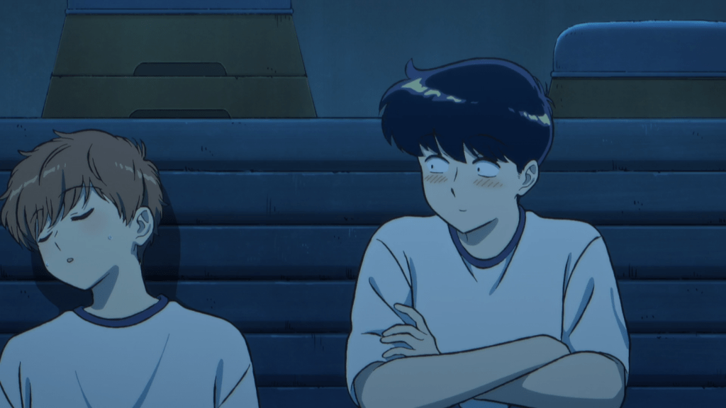 It was so cute and wholesome to see Nakamura being such a fan of Kawamura’s art. Because of their interactions, Kawamura realized she liked Nakamura. Getting stuck in the gym closet is a trope that I’m a bit sick of, but it was more entertaining in this case because there were three people and not just two. Nakamura acted a little creepy by sneaking a smell of Hirose while he was sleeping. Hirose didn’t notice, but Kawamura saw Nakamura leaning in close to the other boy. Once they were finally freed from the locked room, the three kids rode home with their teacher driving. Looking at Nakamura, Hifumi now seemed to realize that he was crushing on Hirose. Nevertheless, she couldn’t help her own crush on Nakamura. I’m glad this anime is including female characters – though, of course, I still strongly prefer the gay ship, haha.